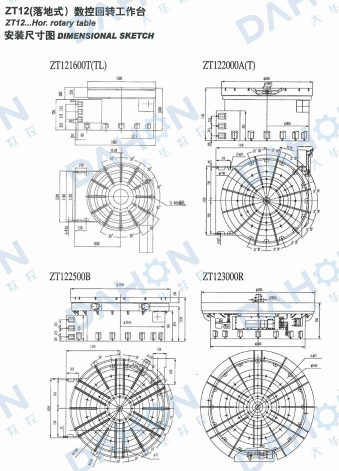 可以 據用戶要求提供矩形或者圓形工作臺d ZT 121600、ZT 122000、ZT122500A轉臺裝角度編碼器后分精度達土2”。)